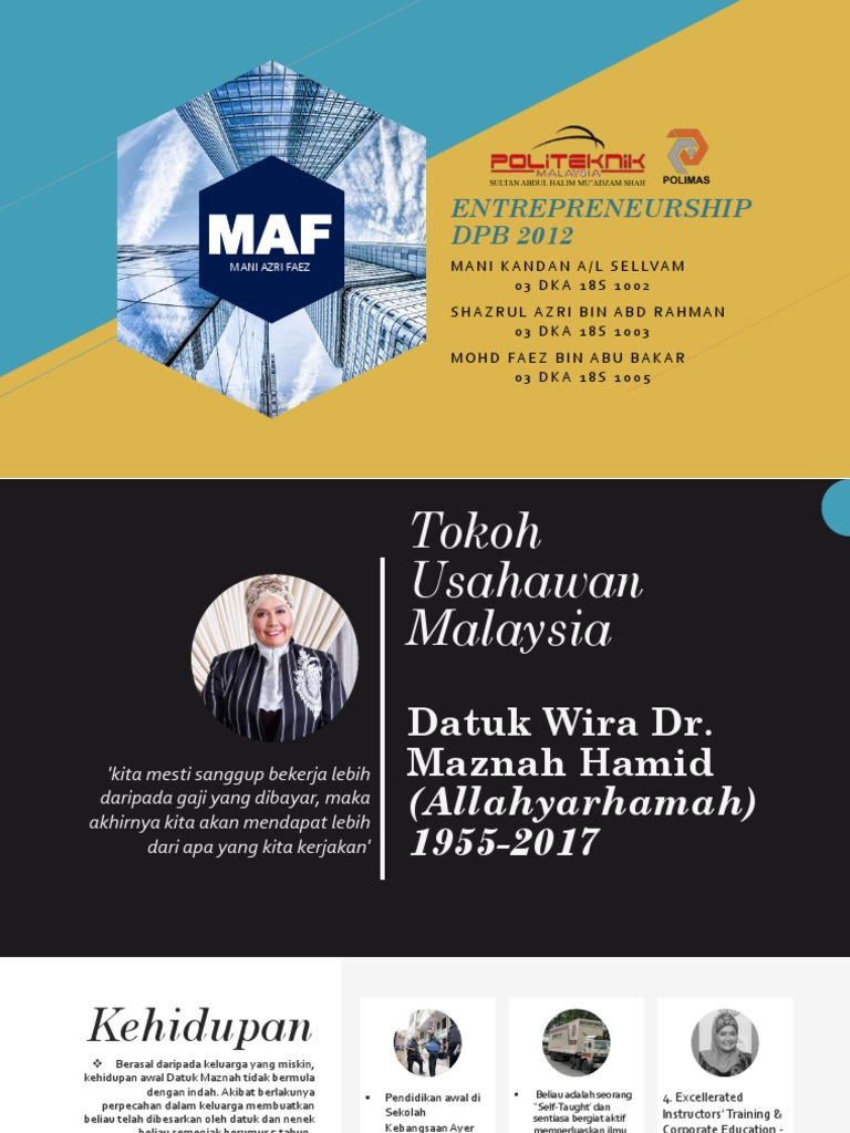 She is said to be versality because she has brought the no future unknown securiforce become a biggest security company in malaysia and has successfully compete with other companies from the same field. Слушать и скачать profile datuk maznah hamid. Datuk wira dr maznah hamid adalah nama yang tidak asing lagi dalam dunia usahawan wanita. Maznah also has the vision to have collaboration with few potential partners in middle east, europe and usa to enhance our logistics services the most incredible and interesting part in datuk wira dr. Dia adalah salah satu pakar motivasional yang telah memberikan ceramah dan motivasi kepada pengusaha, anggota perusahaan, politisi.