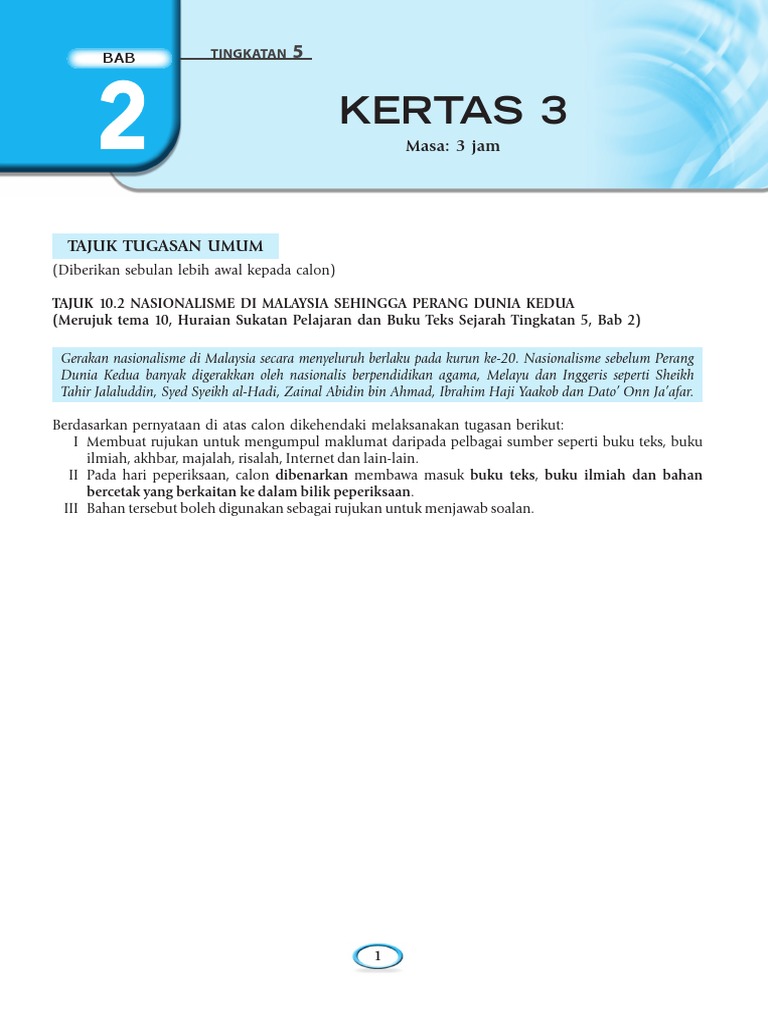 Kertas3 Spm 2015 Edit Doc from imgv2-1-f.scribdassets.com Posted by cikgumahfuzah on 11 mei 2012 in umum. Sejarah kertas 3:nasionalisme di malaysia sehingga perang dunia kedua. Apa yang menjadi penyebab utama terjadinya perang dunia i? Cikgu, boleh tak cari untuk kertas 3 tajuk 'tema 10.2 gerakan nasionalisme sehingga perang dunia kedua? Nasionalisme di malaysia sehingga perang dunia kedua 1. Cadangan jawapan nasionalisme di malaysia sehingga perang dunia kedua. Nasionalisme di malaysia sehingga perang dunia kedua. Berikut dikongsikan cadangan jawapan sejarah kertas 3 bab 2 untuk panduan dan rujukan pelajar semua.